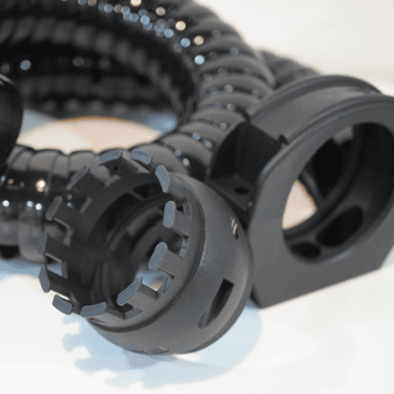 is specifically designed for the end-effectors of 6-axis robotic arms, providing a robust and reliable interface for cable management. Manufactured from high-performance reinforced nylon, this bracket features an integrated "Mounting Base + Toothed Strain Relief" design that effectively clamps and secures the cable carrier while ensuring cables exit smoothly. When paired with our 3D cable chains, it prevents loosening and wear caused by high-frequency multi-directional motion, ensuring long-term operational stability.