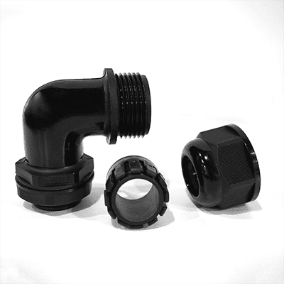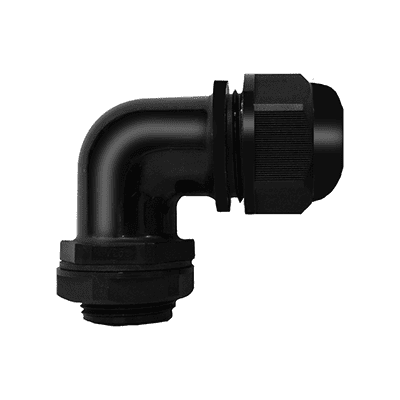 is made from UL-certified flame-retardant nylon and high-performance sealing rubber. It offers exceptional chemical resistance, wide temperature tolerance, and reliable waterproof and dustproof protection with an IP68 rating. Its clamping claws and ring design provide a broad gripping range and strong pull-out resistance, keeping cables securely in place. The 90° angled design is ideal for corner installations. Perfect for automation equipment, electrical control panels, and demanding industrial environments.