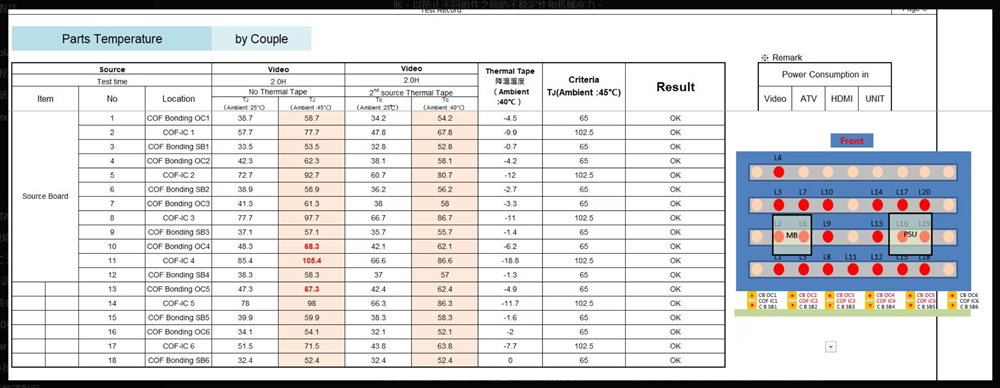 - Measurement method: Thermocouples attached to COF ICs and bonding areas