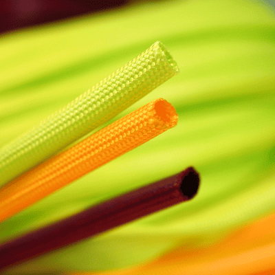 (Tetoron)は、テトロン(ポリエステル)糸を編み込んでチューブを作り、さらにバーニッシュでコーティングして、耐久性と柔軟性を持つ保護層を形成します。一般的なシリコンガラスファイバー製のチューブと比較して、テトロンチューブは優れた耐摩耗性を誇り、高温絶縁保護用途に非常に適しています。